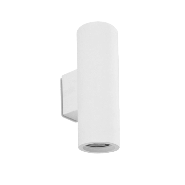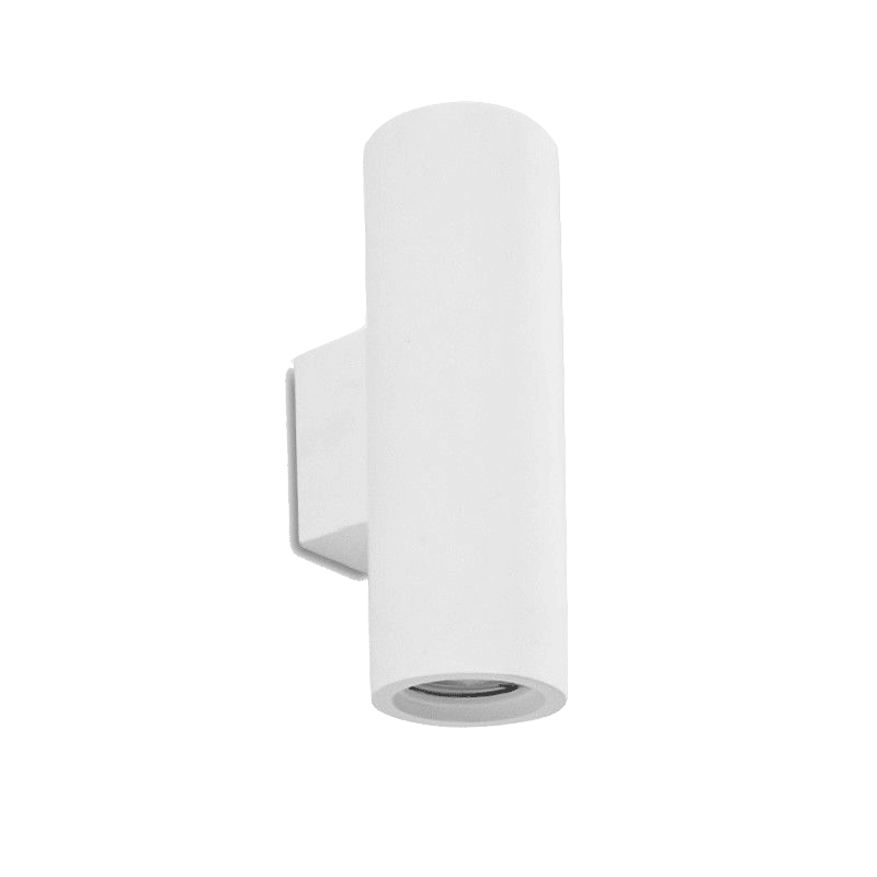 Applique in gesso ceramica, di forma cilindrica, antigraffio verniciabile a doppia luce con possibilità di illuminazione anche differenziata (sopra e sotto con due lampade a temperatura colore diversa).