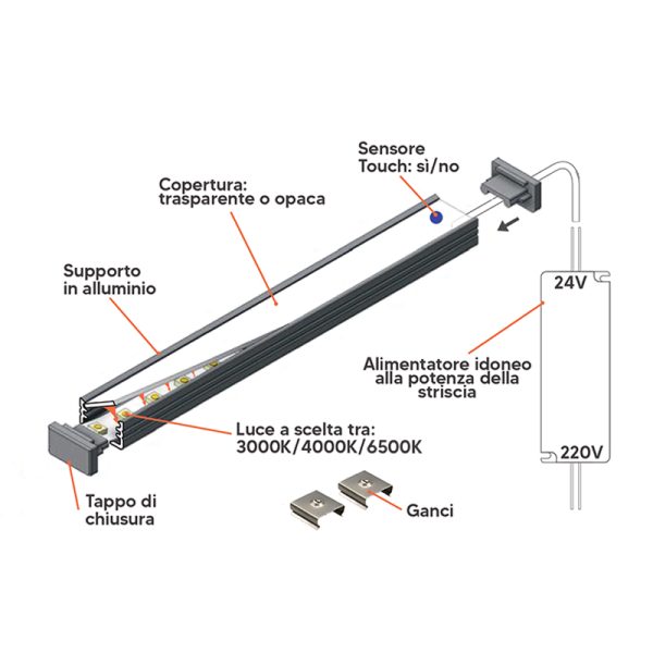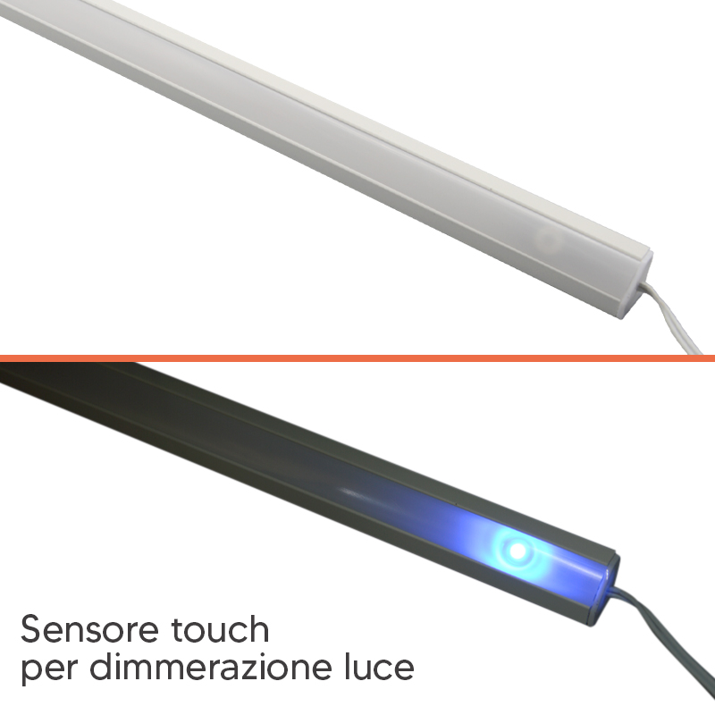 N.B: Secondo richiesta può essere fornito il sensore touch per accendere e regolare la luminosità della barra LED, tale accessorio viene incorporato nella barra stessa.