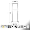 Lampioni da giardino LED in stile moderno, realizzati in resina antiurto, stabilizzata ai raggi UV, inattaccabile da ruggine e corrosione. Provvisti di diffusore in metacrilato opale che garantisce un’uniforme distribuzione della luce. Vengono forniti con inclusa lampadina LED E27, certificata TÜV-CB, di lunga durata ed elevata efficienza. Classe di isolamento II, grado di protezione IP55.