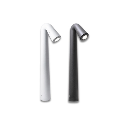 Lampione da giardino LED in stile moderno con emissione della luce direzionata, realizzato in resina antiurto, stabilizzato ai raggi UV, inattaccabile da ruggine e corrosione. Doppia modalità di installazione al suolo, con picchetto o tasselli, viene fornito con lampadina a LED G9, certificata TÜV-CB, di lunga durata ed elevata efficienza. Classe di isolamento II, grado di protezione IP67.