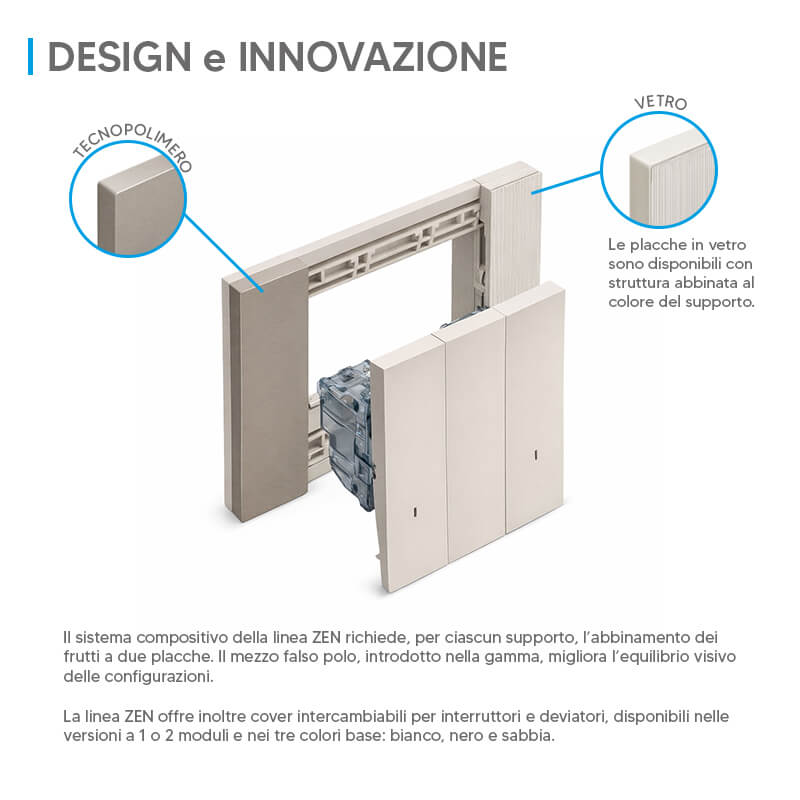Le placche in vetro della linea ZEN rappresentano la scelta ideale per ambienti sofisticati e contemporanei. La superficie liscia e brillante valorizza ogni dettaglio, trasformando l’impianto elettrico in un vero elemento di design.