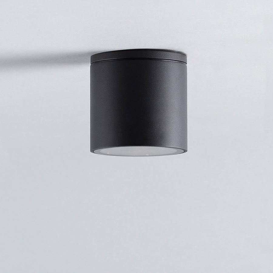 Questa plafoniera da soffitto, dalla forma cilindrica e la rifinitura opaca, è realizzata in resistente alluminio con diffusore in cristallo trasparente. È perfetta per soggiorni, stanze o corridoi, ma anche vetrine, cucine, terrazzi ecc. Infatti, il grado di protezione IP54, la rende impermeabile e antipolvere, permettendo di installarla in spazi esterni. È dotata di un portalampadina GU10, in cui può essere installato un faretto di potenza massima 35W.