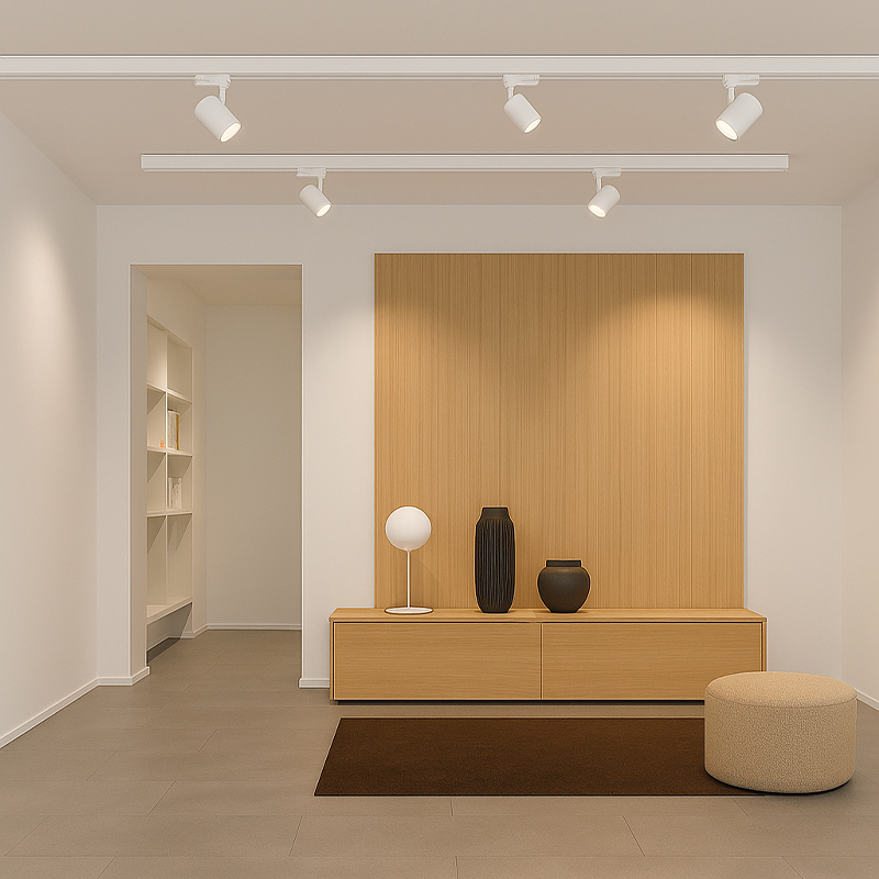- Flessibilità: Questi faretti possono essere spostati lungo il binario, offrendo la massima versatilità per direzionare la luce dove si vuole.