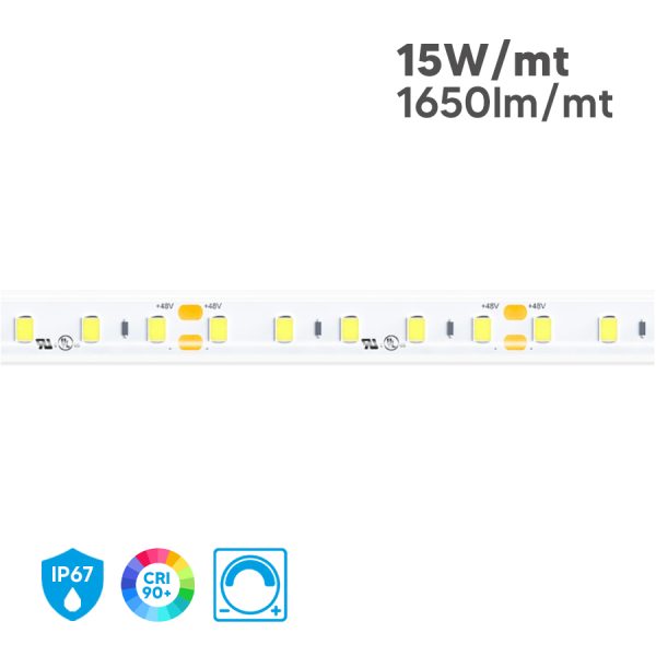 Illumina i tuoi ambienti con prestazioni professionali grazie alla Striscia LED 20 metri HC50075. Progettata per installazioni interne ed esterne, questa strip LED 48V garantisce alta efficienza luminosa e una resa cromatica eccezionale con CRI90+, ideale per creare atmosfere naturali e piacevoli.